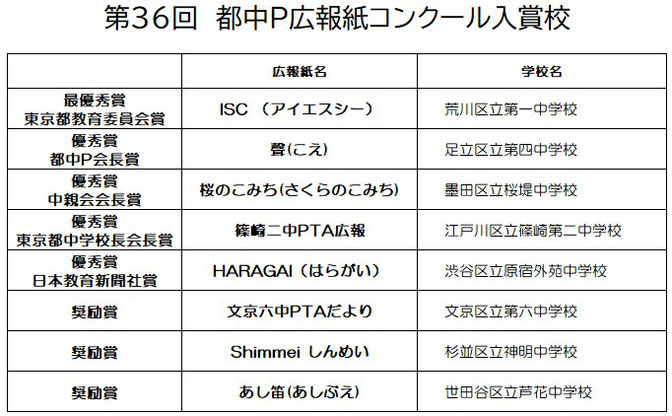 入賞されたPTA広報委員会の皆様、おめでとうございます。